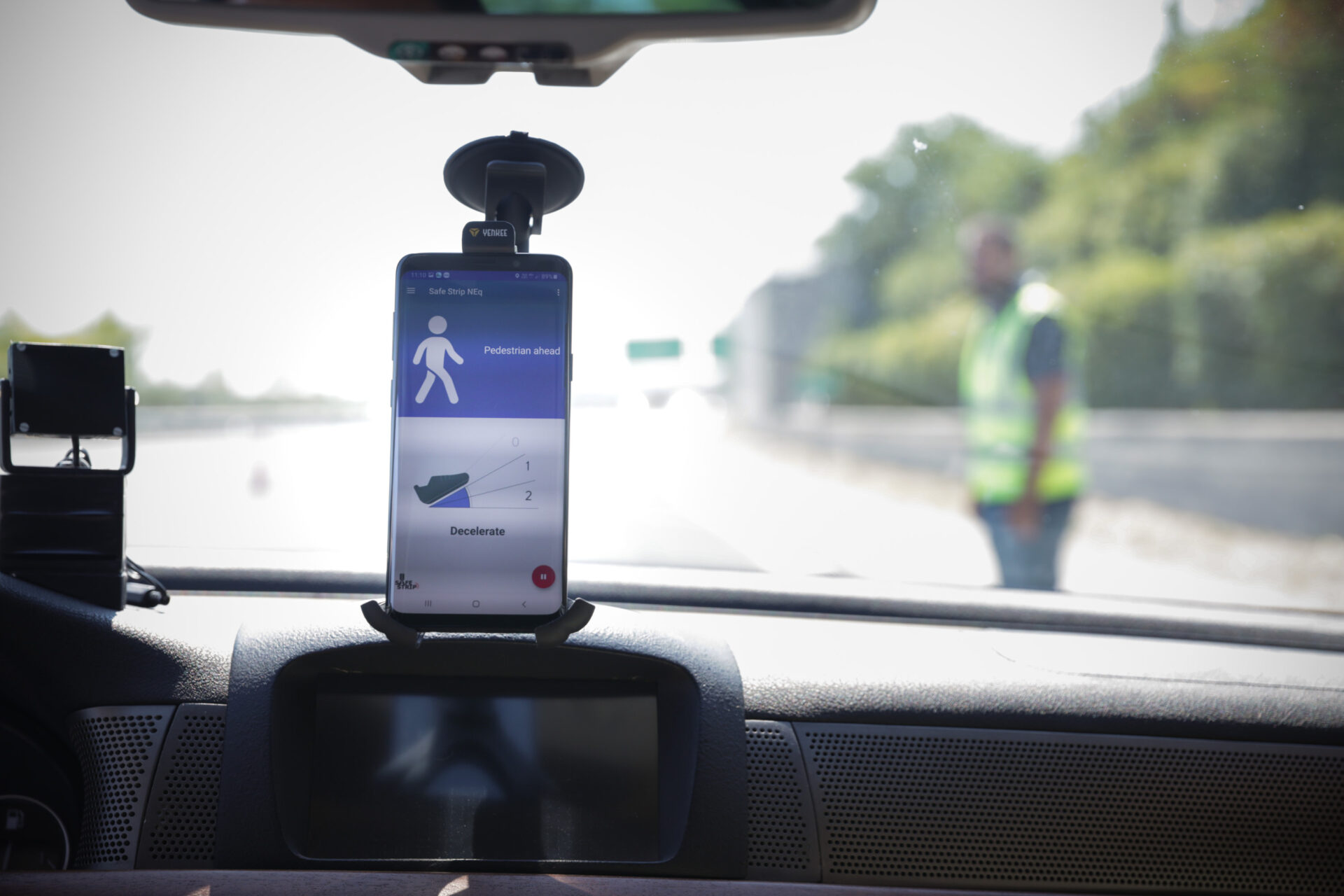 One of the highlights of the event were the live and virtual demonstrations of SAFESTRIP’s technology showcased at Attikes Diadromes by CERTH/HIT with the support of the University of Trento, SWARCO and VALEO. The demonstrations focussed on the interoperability between the infrastructure and SAFE STRIP’s application, solutions for positioning, Wrong Way Driving, VRU and Road Work Zones, a demonstration on the road back material and autonomous vehicle functions demonstrators.
